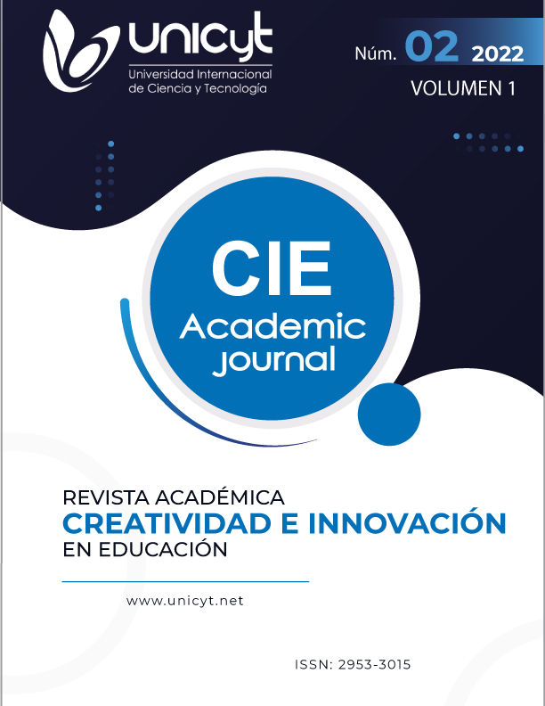 La UNICyT se complace en presentarles el Vol. 1 Núm. 1, enero – junio 2022, de la revista CIE – Academic Journal, donde se podrá apreciar la generación de productos vinculados estrechamente a la educación en su teoría y praxis educativa, en una dimensión multidisciplinar que abarca a todas las áreas del conocimiento, vinculados entre otras, con temáticas amplias como es el currículum, la formación del recurso humano y competencias dirigidas al desarrollo de habilidades en contextos específicos. Esperamos que esta revista se convierta en un referente local e internacional, y un instrumento que pueda coadyubar en el interés de muchos investigadores y estudiantes en formación, para publicar en beneficio y crecimiento del acervo científico educativo-social y humanístico de cada área de estudio. También se pretende dirigir este esfuerzo hacia temáticas de interés que promuevan la atención y desarrollo de la comunidad académica local e internacional.