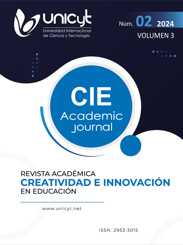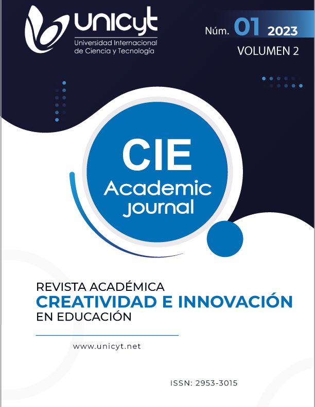 La UNICyT se complace en presentar el Volumen 1, Número 2 de la revista CIE - Academic Journal, correspondiente al período de julio a diciembre de 2022. En este ejemplar de la revista, se pueden apreciar los resultados de la generación de productos vinculados estrechamente a la educación en su teoría y práctica, en una dimensión multidisciplinaria que abarca todas las áreas del conocimiento.